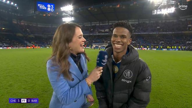 歐冠聯(lián)賽階段第5輪一場較量,切爾西主場3-0完勝巴薩。攻入一球的巴西小將埃斯特旺賽后接受了亞馬遜Prime的采訪。