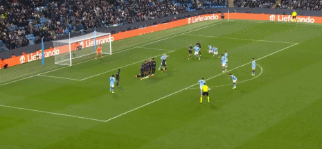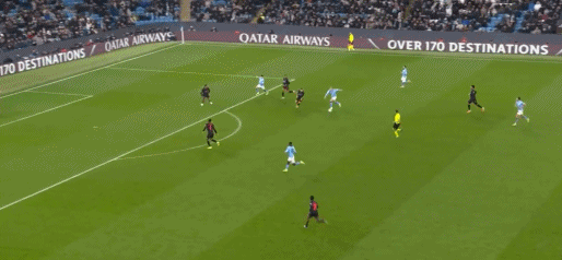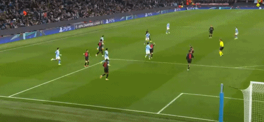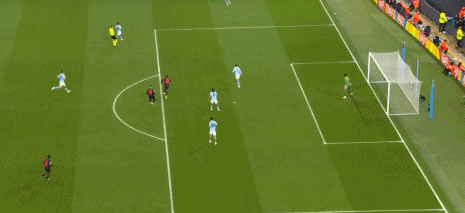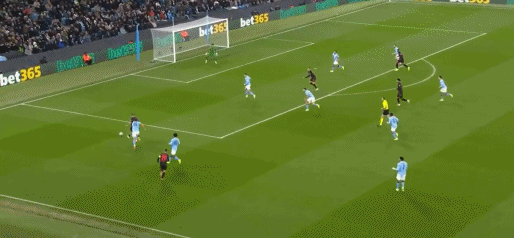 第25分鐘,反客為主,格里馬爾多抽射破門,曼城0-1