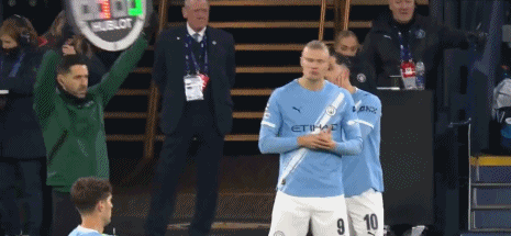 第48分鐘,今天會(huì)亮相嗎?哈蘭德場(chǎng)邊正在熱身