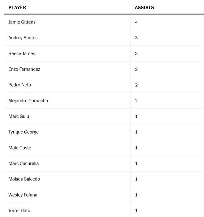 帕爾默的創(chuàng)造力也是難以替代的,雖然助攻并不是衡量這方面能力的唯一指標,但仍然值得注意,在這同樣的13場比賽中,有13名不同的球員至少貢獻了一次助攻。