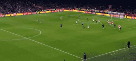 第30分鐘,薩利巴搶斷的同時(shí)一腳出球,埃澤的停球相當(dāng)精彩,但最后的推射稍顯離譜,自己都吐舌頭有些尷尬。