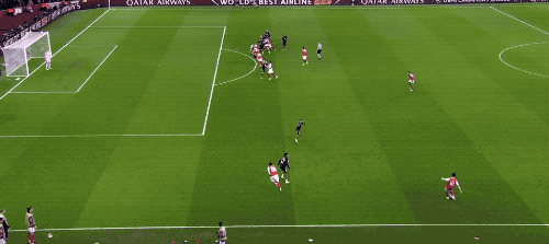 第57分鐘,阿森納再次獲得角球,莫斯克拉形成擋拆,梅里諾的頭球稍稍偏出。