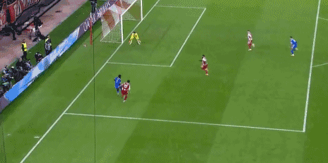 第52分鐘,埃澤右路45°傳中,塔雷米搶點頭槌破門,奧林匹亞科斯扳回一城,2-3!