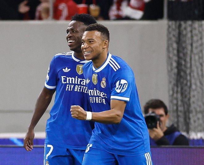 第22分鐘,皇馬踢出犀利反擊,威尼修斯左路長傳,姆巴佩單刀推射,打穿措拉基斯的小門,為銀河戰(zhàn)艦扳平,1-1!第24分鐘,阿諾德右路做球,居萊爾轉(zhuǎn)身起球傳中,姆巴佩搶點頭槌建功,2分鐘內(nèi)梅開二度,皇馬迅速反超,2-1!