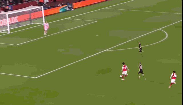 第62分鐘,賴斯帶球殺入禁區(qū)后射門被撲出,薩卡跟進(jìn)補(bǔ)射未能踢到球。