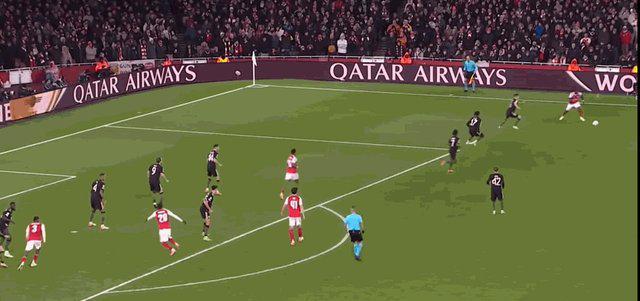 第55分鐘,薩卡送出傳中,后點(diǎn)的梅里諾頭球攻門被諾伊爾沒(méi)收。