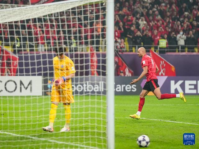 11月25日,成都蓉城隊球員費利佩進球后慶祝。新華社記者 王曦 攝