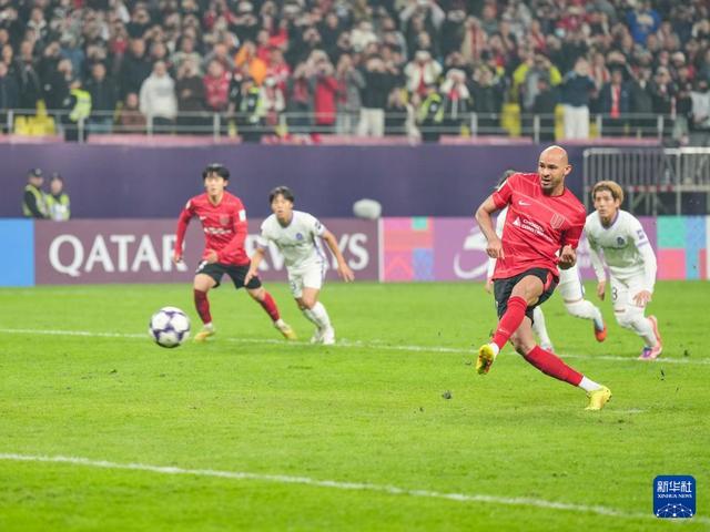 11月25日,成都蓉城隊球員費利佩(前)主罰點球得分。新華社記者 王曦 攝