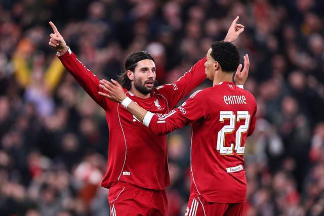 本場比賽利物浦沿用433陣型,?;倏?、加克波和薩拉赫繼續(xù)搭檔鋒線,麥卡利斯特、赫拉芬貝赫和瓊斯形成三中場,索博斯洛伊繼續(xù)客串右后衛(wèi),伊薩克坐在替補(bǔ)席待命,維爾茨則因傷缺席大名單。