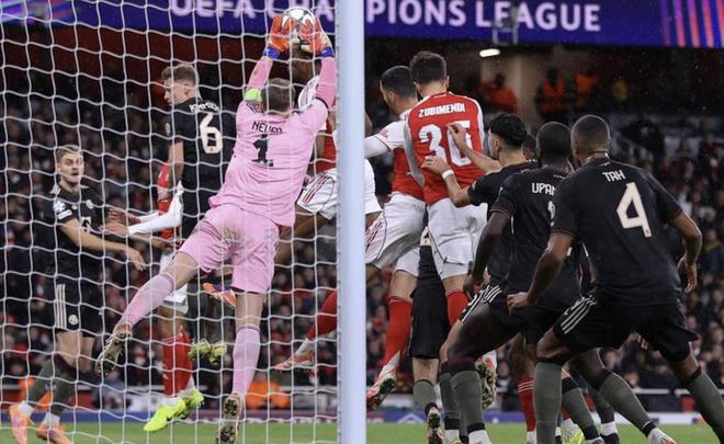 比賽進(jìn)行到第22分鐘左右,在阿森納開出角球前,諾伊爾在禁區(qū)內(nèi)被阿森納后衛(wèi)廷貝爾輕微碰到,當(dāng)時廷貝爾正從他身邊跑過。隨后諾伊爾選擇出擊,但在爭搶落點時慢了一步,廷貝爾最終進(jìn)球。
