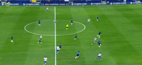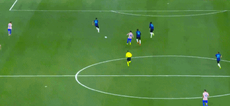 第90分鐘,阿坎吉解圍,皮球直接悶倒巴雷拉