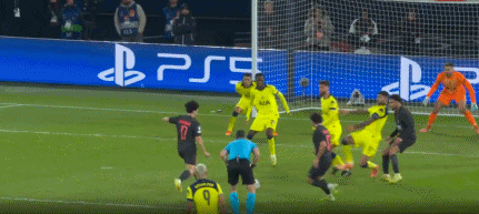 第45分鐘,扳平比分,維蒂尼亞弧頂前迎球抽射破門,巴黎1-1