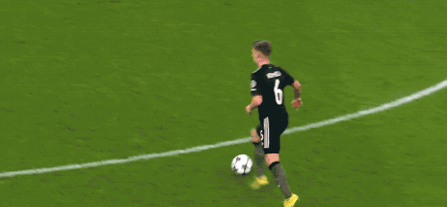 2分鐘后,基米希的長(zhǎng)傳精準(zhǔn)制導(dǎo),格納布里不停球直接傳中,17歲的小將卡爾包抄到位,扳平比分。